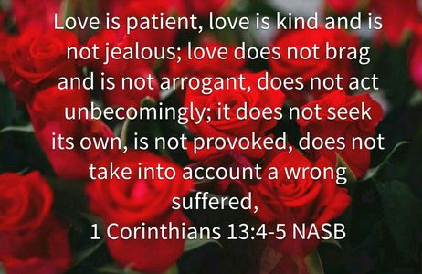Love is patient, love is kind. It does not envy, it does not boast, it is not proud. 5 It does not dishonor others, it is not self-seeking, it is not easily angered, it keeps no record of wrongs. 6 Love does not delight in evil but rejoices with the truth. 7 It always protects, always trusts, always hopes, always perseveres.
